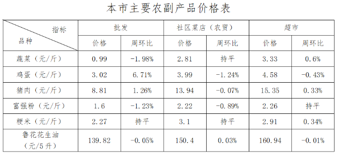 本周(6月21日-27日)鸡蛋批发价格止跌回涨,蔬菜批发价格继续季节性下行。从全国价格水平看,北京市蔬菜、猪肉和鸡蛋零售均价在36个大中城市中,从高到低排名分别为第32、29和20位,均低于全国平均价格水平。1.蔬菜量足价减,批发价格持续下行。25种蔬菜9涨1平15降(涨幅前三的为:生菜33.8%、芹菜20.69%、黄瓜19.49%)。批发、社区菜店、连锁超市价格分别为每斤0.99元、2.81元、3.33元,周环比涨幅分别为-1.98%、0%、0.6%。2.鸡蛋批发价格呈恢复性上涨态势,周均价上涨明显。鸡蛋前期产能去化初显成效,批发价格震荡调整,本周批发价格止跌回涨趋势明显。批发市场日均交易量45.65万公斤,周环比减少1.93%。批发、农贸、超市价格分别为每斤3.02元、3.99元、4.58元,周环比涨幅分别为6.71%、-1.24%、-0.43%。3.猪肉批发价格止跌企稳。本周猪粮比价为6.56:1,周环比上涨1.39%,处于合理区间运行。白条猪批发、精瘦肉农贸及超市价格分别为每斤8.81元、13.94元、15.35元,周环比涨幅分别为1.26%、-0.07%、0.33%。4.富强粉因消费需求季节性减少,导致批发价格小幅下降,粳米和花生油价格基本稳定。富强粉批发、农贸、超市价格分别为每斤1.6元、2.22元、2.26元,周环比涨幅分别为-1.23%、-0.89%、0%。