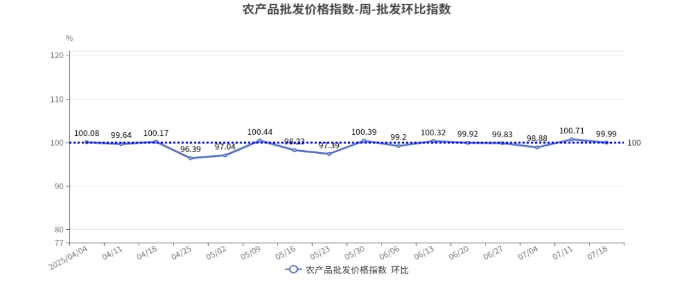 2025年第28周(7月12日—7月18日),北京市农产品批发价格指数环比为99.99,下降0.01%;同比为98.37,下降1.63%。