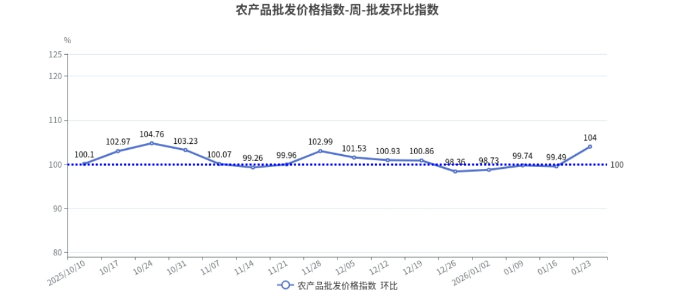 2026年第3周(1月17日—1月23日),北京市农产品批发价格指数环比为104,上涨4%;同比为109.91,上涨9.91%。